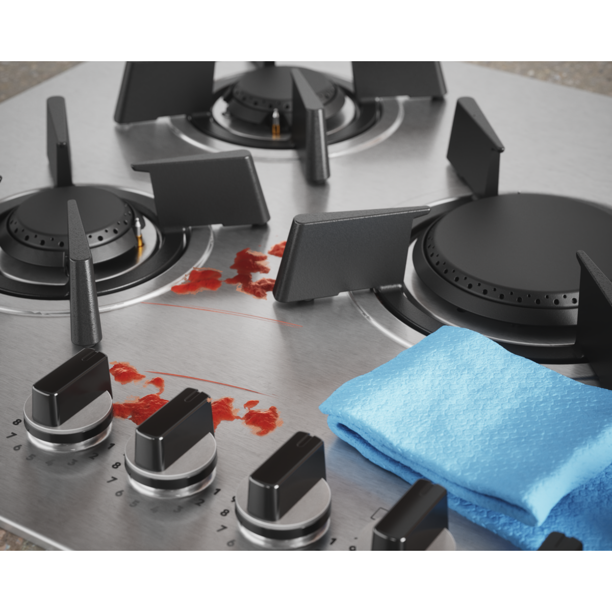 Le revêtement en acier inoxydable EasyClean de cette plaque de cuisson vous fait économiser votre temps et votre énergie. Grâce à son revêtement résistant aux taches et aux rayures, un simple nettoyage au chiffon humide suffit.