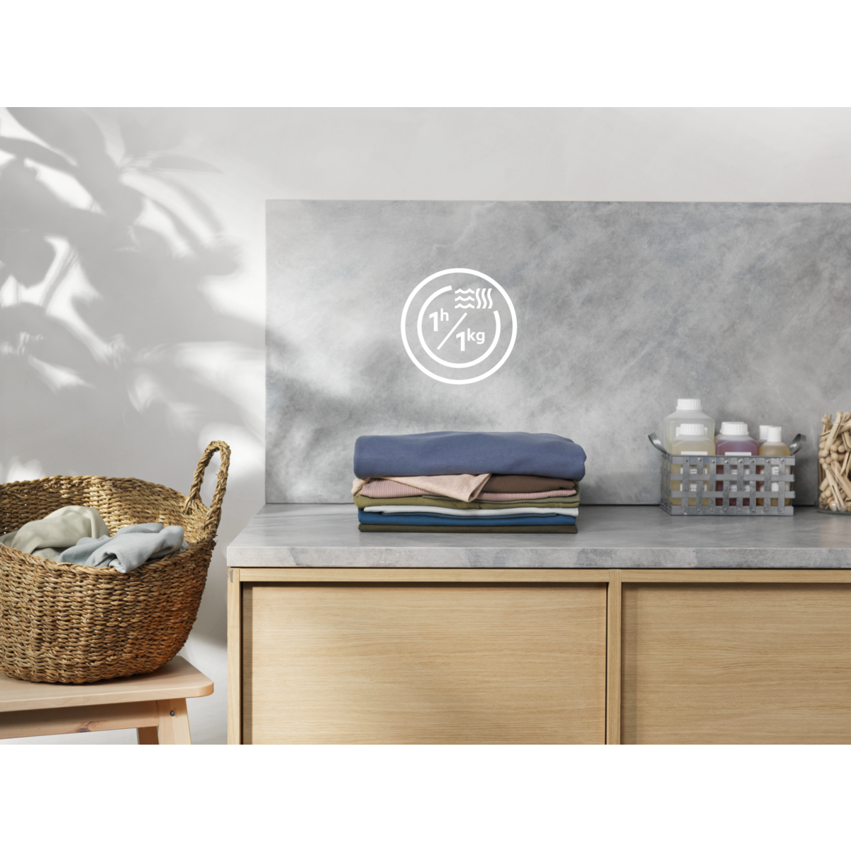 Les lave-linge séchants Electrolux EcoLine sont sélectionnées selon leur classe énergétique. Économisez jusqu'à 40L d'eau avec un cycle vapeur de 25mn*et jusqu'à 55 %** pendant le séchage.