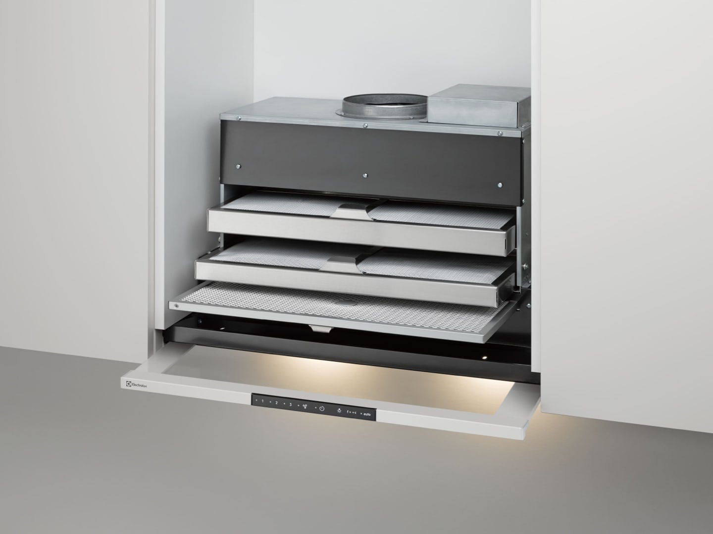 Les filtres anti-odeurs sont uniquement nécessaires pour les hottes à recyclage de l’air. Ils ne sont pas nécessaires pour les hottes à extraction car les vapeurs contenant les odeurs sont évacuées à l’extérieur. Dans un filtre à charbon activé, les odeurs sont capturées à la surface du charbon (adsorbées). Un taux d’absorption élevé ne peut être obtenu que si le filtre à charbon actif est remplacé/nettoyé régulièrement. Les particules de graisse entrant dans le filtre à charbon activé créent des dépôts, ce qui obstrue les canaux des granulés de charbon et compromet considérablement la fonction du filtre anti-odeurs. Il est donc nécessaire de soigneusement changer et nettoyer les deux filtres régulièrement pour garantir le bon fonctionnement de la hotte.
