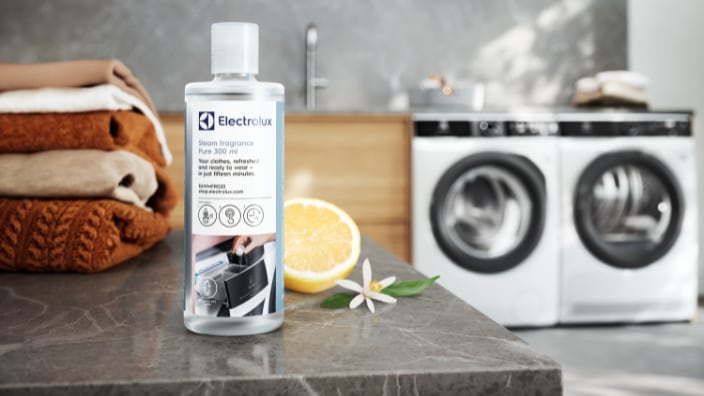 En rafraîchissant vos vêtements avec le programme SteamRefresh de 25 minutes, vous prolongez la durée de vie de vos vêtements tout en économisant 96%* d'eau. Et pour une sensation de fraîcheur plus intense, il est possible d’ajouter le parfum Steam Fragrance Electrolux.
