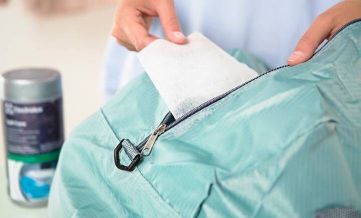 3Gardez toute votre fraîcheurVotre sac de sport reste frais et propre entre les entraînements. Placez deux lingettes de séchage dans votre sac. Il sentira bon et restera propre entre les séances d’entraînement. Ne laissez jamais traîner vos vêtements de sport dans votre sac. Sortez-les le plus tôt possible, même si vous n’envisagez pas de faire de lessive immédiatement.