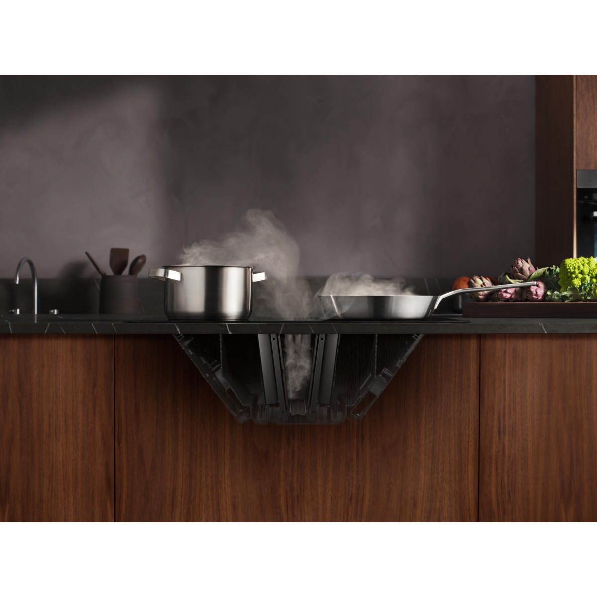 Plus de liberté en cuisine grâce à la plaque aspirante avec hotte intégrée