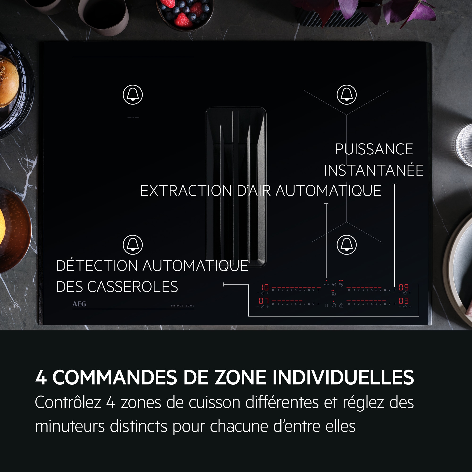 4 commandes individuelles par zone pour des options de cuisson illimitées