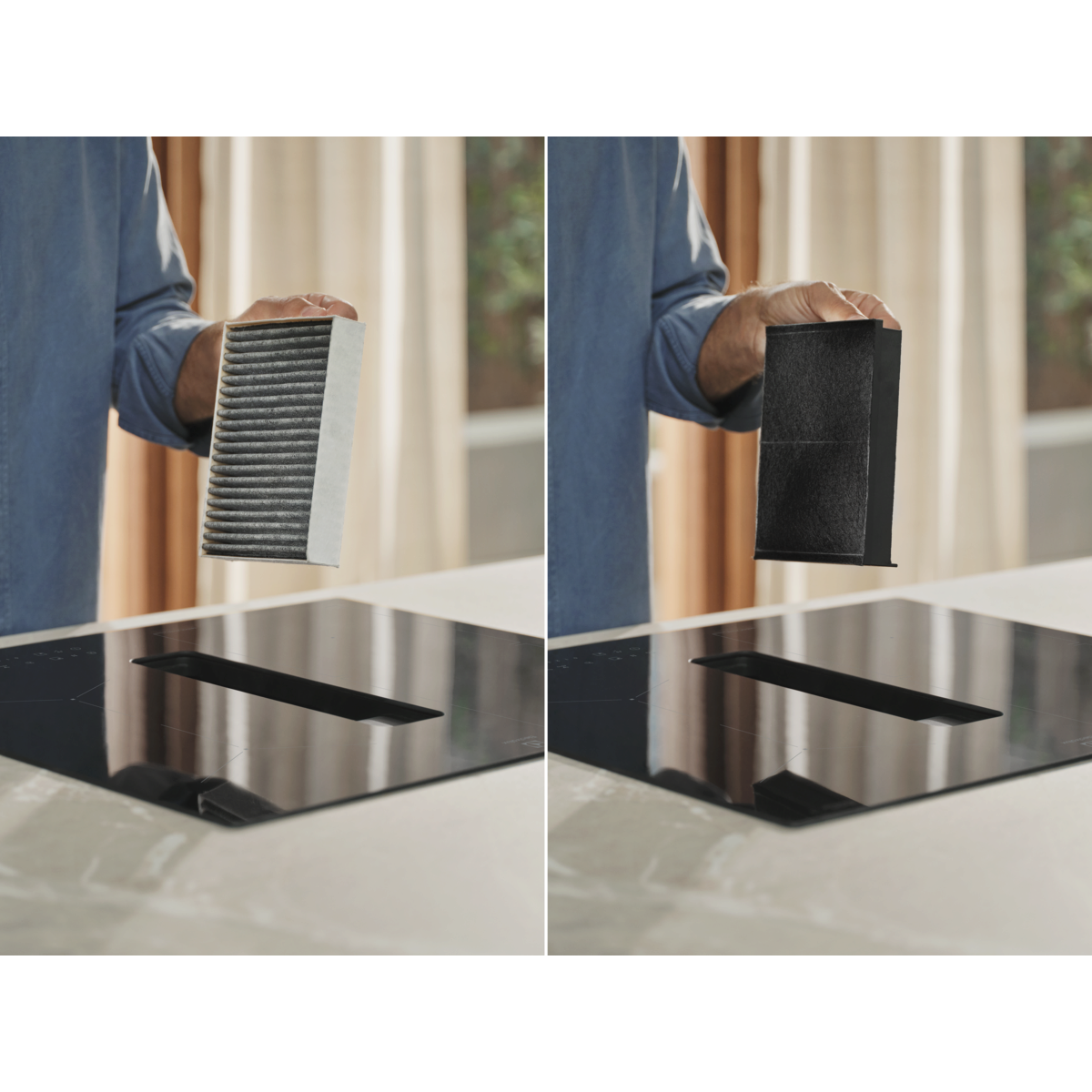 Concevez votre cuisine plus librement grâce à cette plaque avec hotte intégrée.
