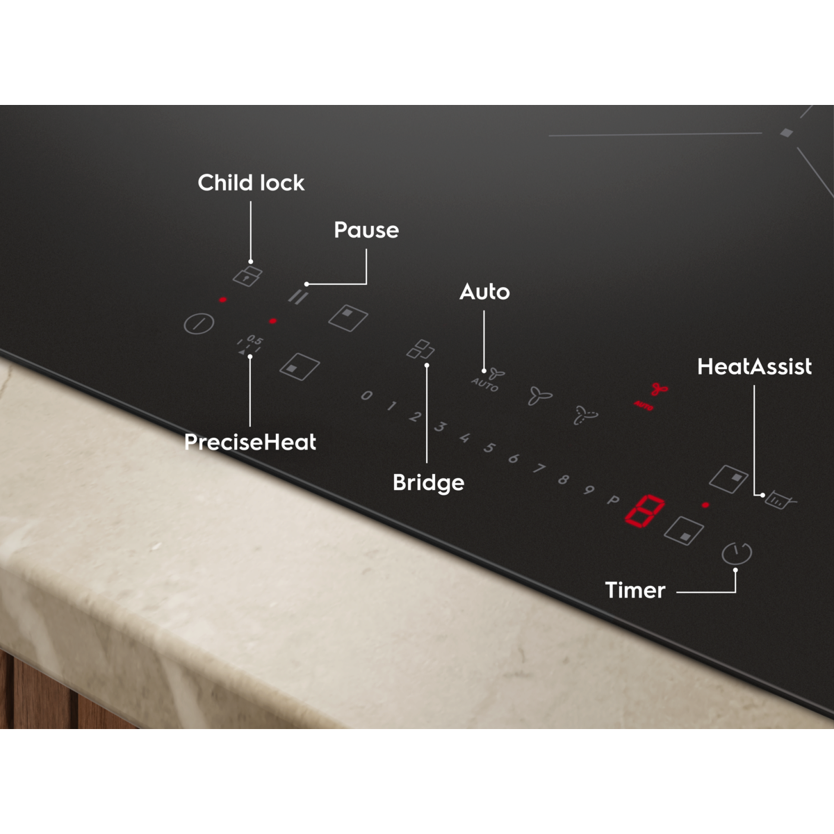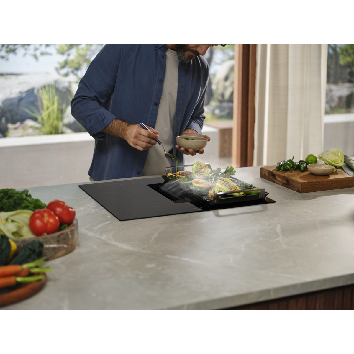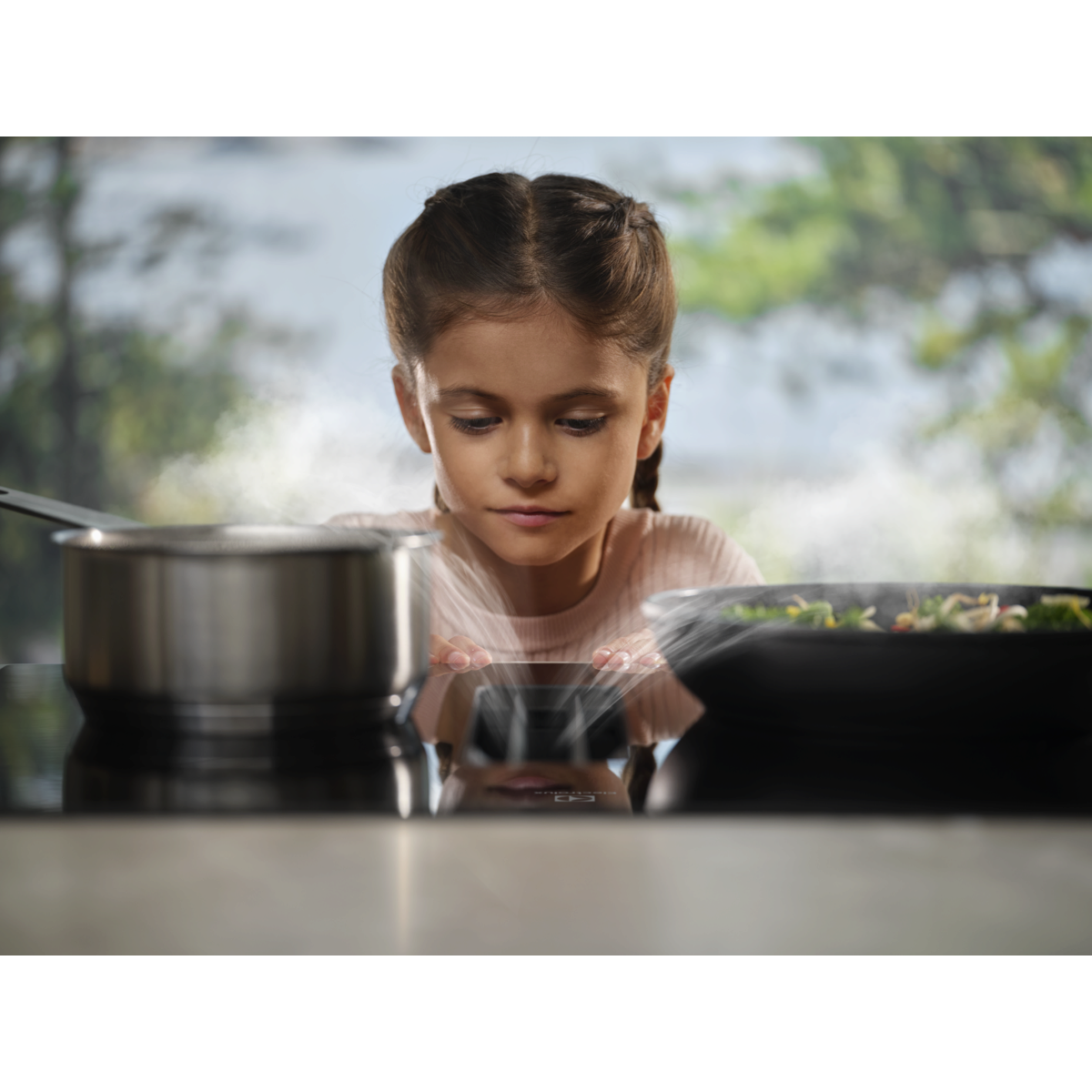 La plaque à induction 600 Bridge s’adapte à un meuble de 60 cm et est équipée d’une hotte intégrée pour évacuer l’air de manière optimale. Elle est aussi dotée de la fonction Bridge, qui vous permet de combiner deux zones de cuisson en une seule.