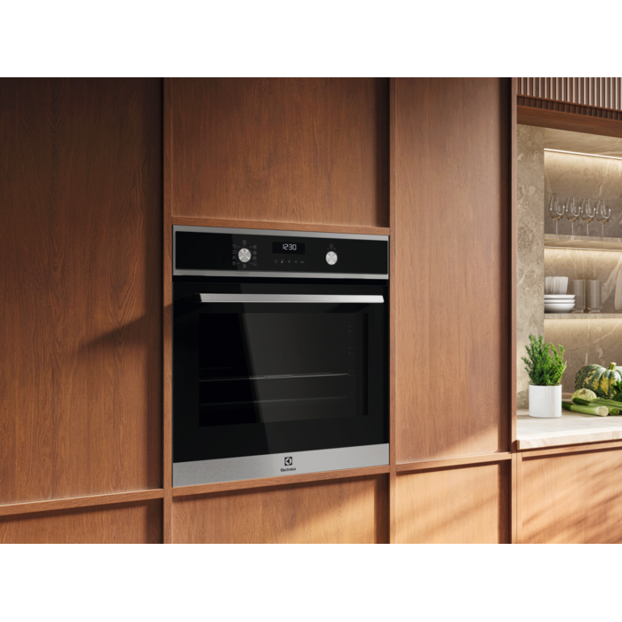 Le four série 500 SurroundCook® assure une cuisson uniforme sur plusieurs niveaux grâce à son système de chaleur tournante pulsée. Doté d’un troisième élément chauffant et d’un ventilateur performant, il fait circuler l’air chaud de manière homogène dans toute la cavité.