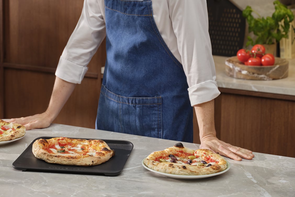 Grâce à la fonction PizzaExpert et à la plaque en fonte, vous pouvez préparer une grande variété de pizzas : napolitaines, classiques, romaines, calzones et des pizzas à base de farines alternatives (sans gluten, blé khorasan, blé complet…). La température s’adapte à chaque recette, par exemple jusqu’à 340 °C pour une pizza napolitaine et environ 320 °C pour une pâte plus fine de style romain.