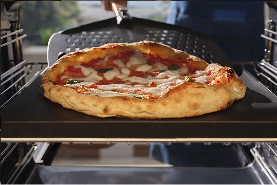 Les fonctions pizza standard atteignent généralement 270 à 300 °C. Les fours PizzaExpert montent jusqu’à 340 °C grâce à un contrôle thermique dédié. Grâce à la plaque en fonte spécialement conçue, ils vous offrent une cuisson plus rapide et des résultats authentiques. Ils vous indiquent également le moment idéal pour enfourner et retirer vos pizzas, pour des résultats uniformes.