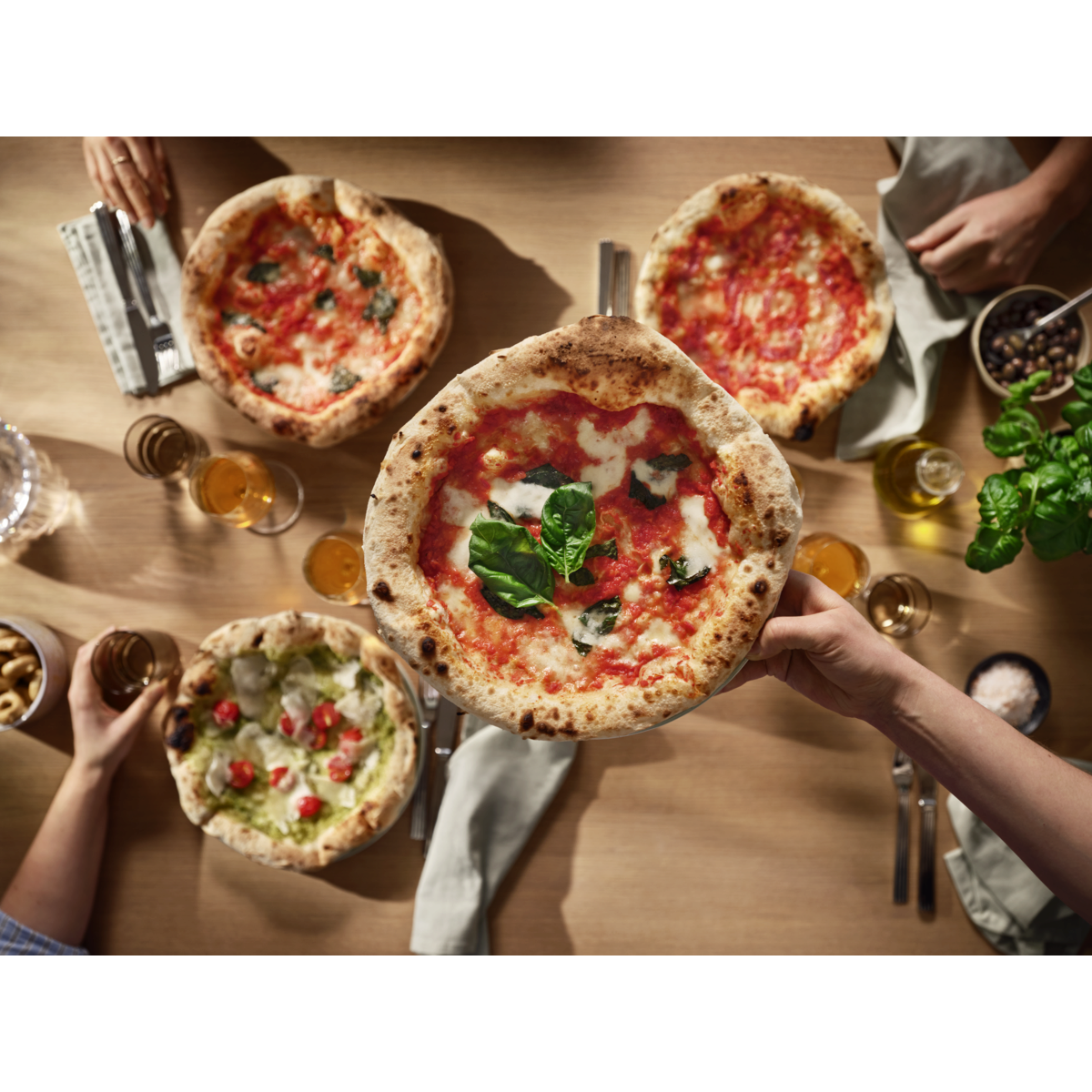 *Basé sur des tests internes avec 25 minutes de préchauffage et une cuisson à 340 °C, validés par l’École Italienne de Pizzaiolo.