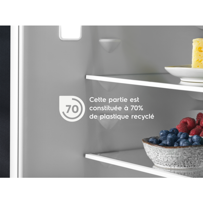 Les réfrigérateurs EcoLine ont un revêtement intérieur composé de plastique recyclé et un écomètre, qui vous guident vers des réglages plus économes en énergie tout en réduisant le gaspillage alimentaire.*