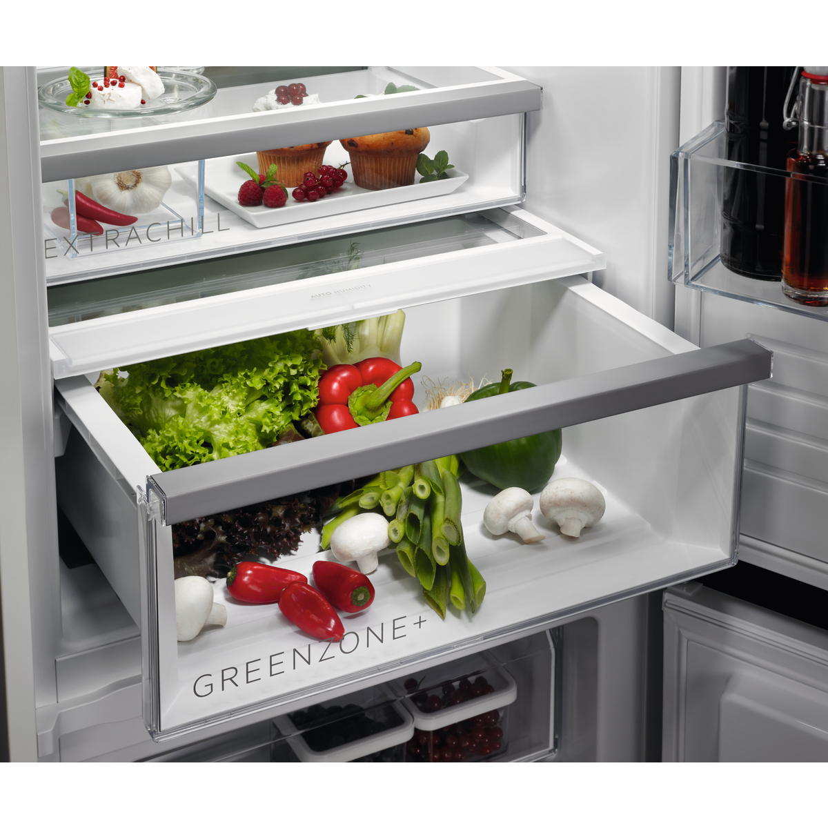 Le réfrigérateur-congélateur 8000 No Frost GreenZone+ offre une conservation alimentaire de haute qualité. Un bac à légumes à humidité contrôlée protège les fruits et légumes, tandis que la technologie No Frost empêche la formation de givre pour que vous n’ayez pas à dégivrer.