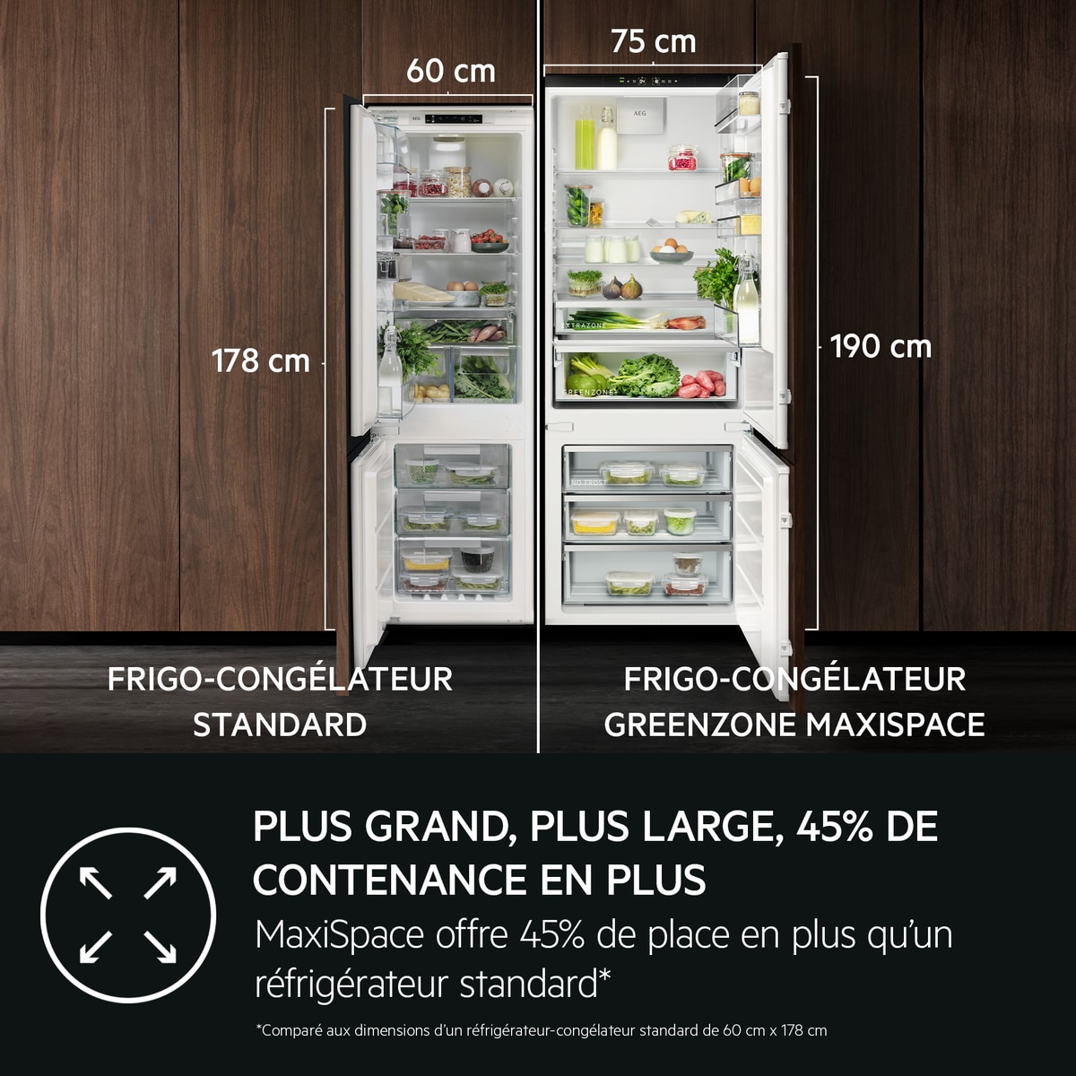 *Par rapport aux réfrigérateurs congélateurs de taille normale