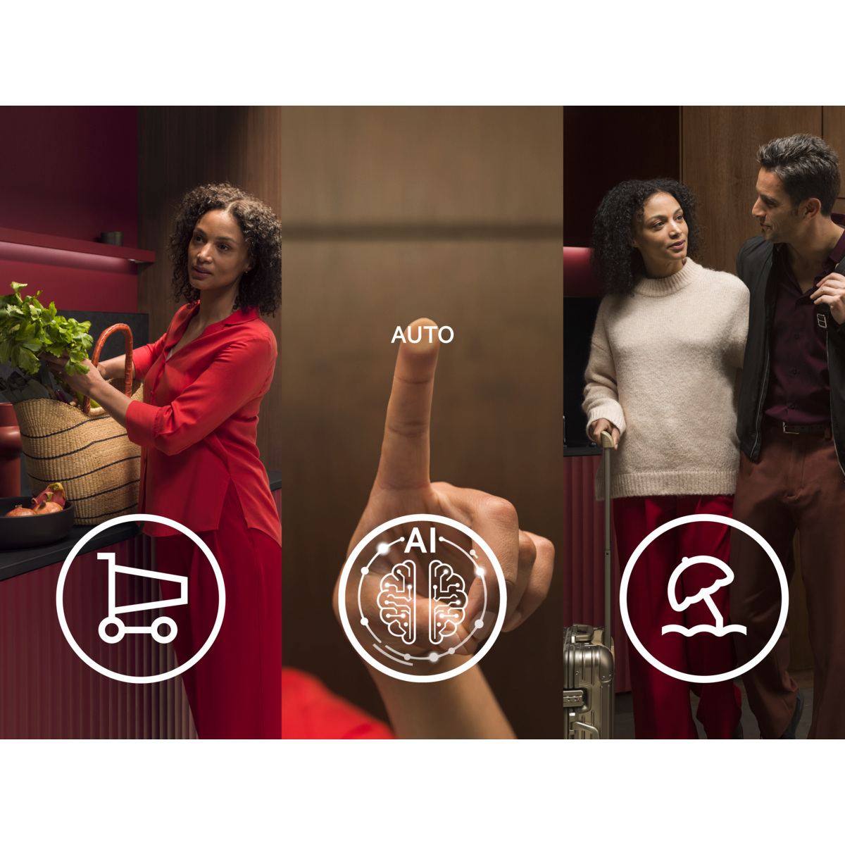 *Testé sur 1780 CB MultiChill et 1780 CB TwinTech NoFrost, comparant la consommation d’énergie à 25 °C avec AI CoolAssist® en mode auto Vacances et les paramètres d’usine par défaut sans l’IA. Les économies d’énergie réelles peuvent varier en fonction des températures ambiantes et de l’utilisation.