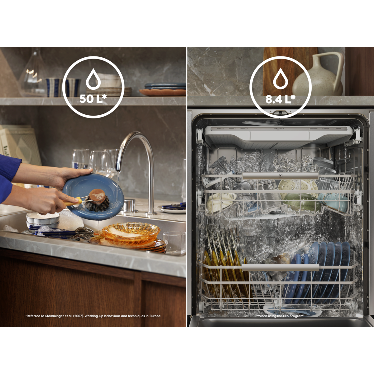 *Basé sur un test indépendant réalisé par un institut tiers allemand avec des pastilles de détergent et lors d’un cycle de 90 minutes sur des résidus de lasagnes incrustés dans un plat.