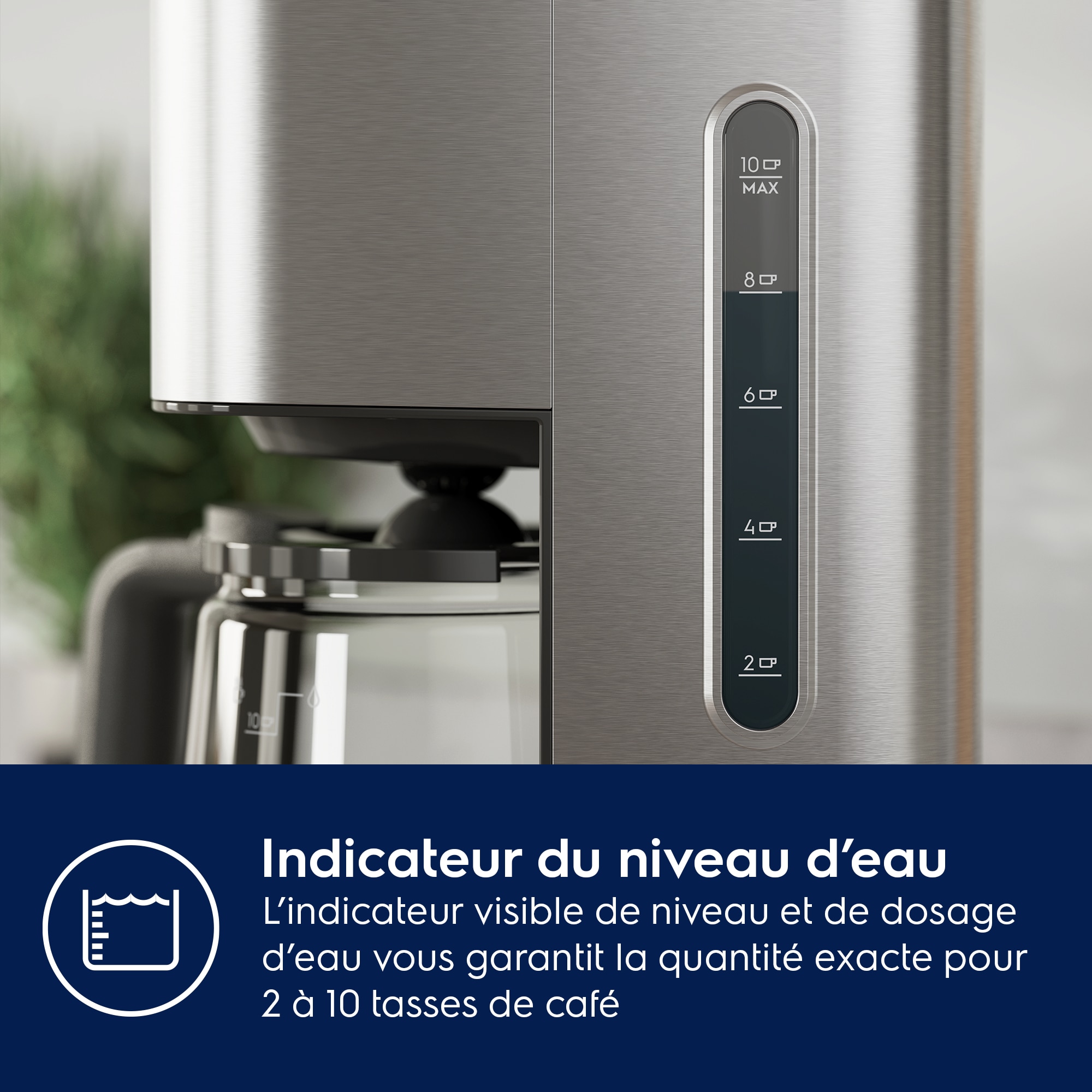 Indicateur de niveau d'eau pour une percolation précise du café