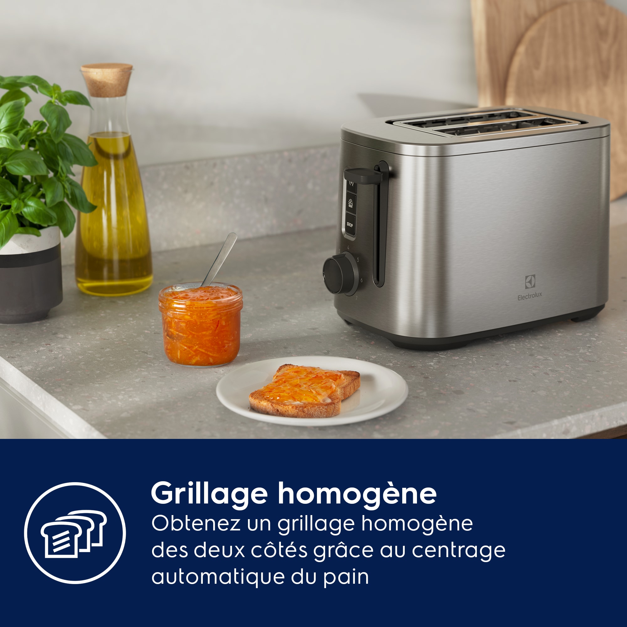 Grillage homogène avec centrage automatique du pain