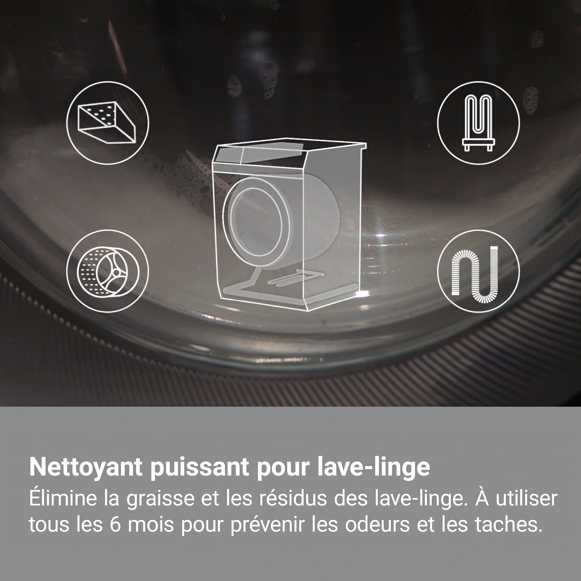 Grâce à notre nettoyant pour lave-linge, les performances de votre appareil resteront optimales. Ce traitement de nettoyage élimine les résidus déposés sur le joint du hublot, les tuyaux et le tambour de votre lave-linge, occasionnant ainsi de mauvaises odeurs et des taches sur votre linge. À utiliser tous les 6 mois.
