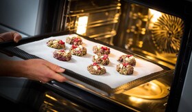 Façonnez 8 petites boules avec vos mains. Aplatissez-les sur du papier cuisson pour former les cookies. Enfournez 10-15 min à 200 °C
