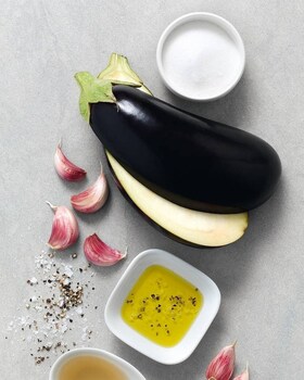 Disposer 1/3 des aubergines, 1/3 des champignons, saupoudrer d’un peu d’ail, de dés de mozzarella et parmesan.