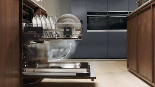 Nos hottes fonctionnent silencieusement au-dessus de nos plaques de cuisson - qui quant à elles adaptent leur température à votre recette, nos fours savent quand ajouter la bonne quantité de vapeur pour rendre n’importe quel plat plus savoureux et nos lave-vaisselle sont dotés d’un panier relevable pour que vous puissiez facilement les remplir et les vider : c’est ça la cuisine intuitive !