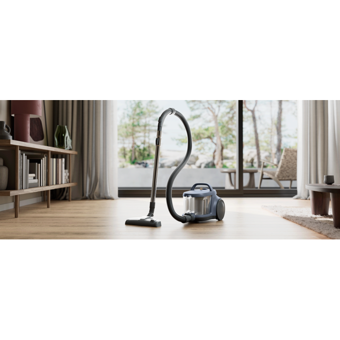 Conçu pour être pratique, cet aspirateur possède un bac de 2L, un design compact pour être rangé facilement, et un séparateur cyclonique pour des performances sans obstructions. Grâce à sa filtration HEPA et sa brosse CombiFloor, il nettoie en profondeur un grand nombre de types de surfaces.