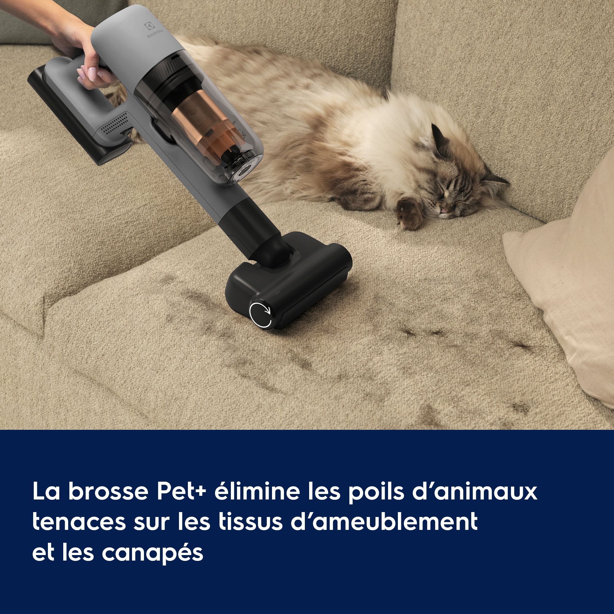 Puissant et léger, l’aspirateur sans fil 700, est une solution exceptionnelle pour ceux qui vivent avec des animaux. Grâce à la forte aspiration et à la brosse Pet+, les poils sont éliminés sur toutes les surfaces de la maison et de la voiture, en toute simplicité.
