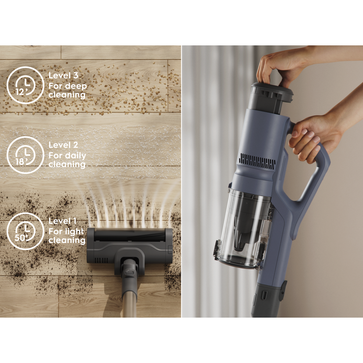 Des performances exceptionnelles pour capturer jusqu’à 99 %* de la poussière sur sols durs. Sans fil et léger, cet aspirateur vous offre une liberté totale de mouvement. Son système de vidage en un seul geste simplifie l’entretien. Une efficacité simple et fluide, intégrée dès la conception.