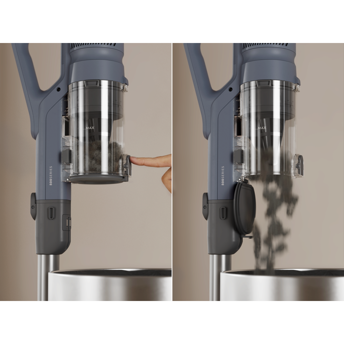 Vidage rapide du bac à poussière en un seul geste