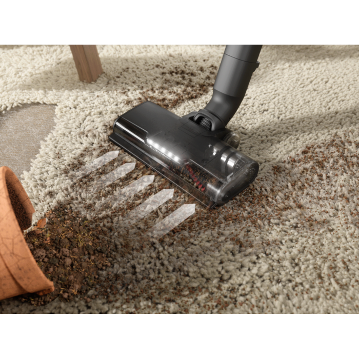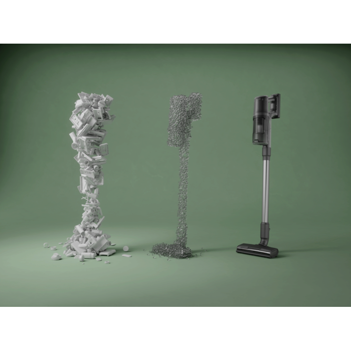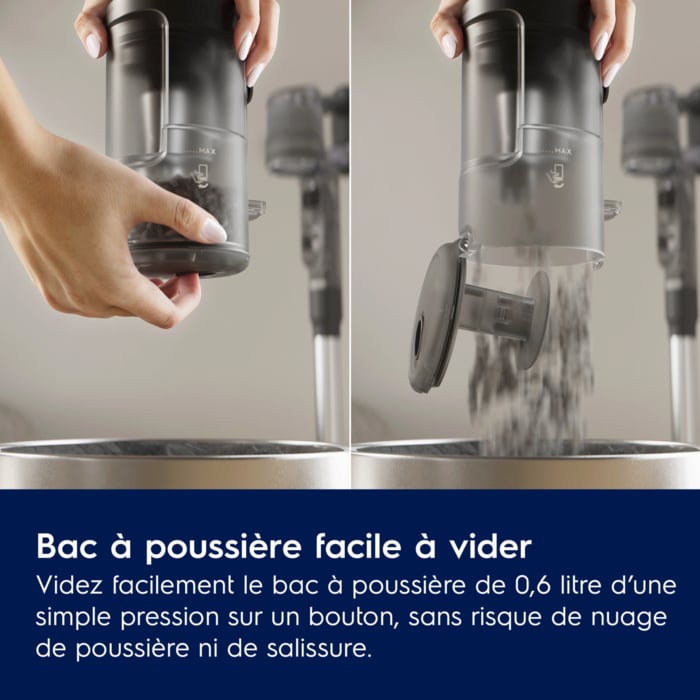 *Mesuré par rapport au précédent aspirateur sans fil 600 avec un bac à poussière chargé de poussière DMT (test standard), selon la norme IEC 62885-4