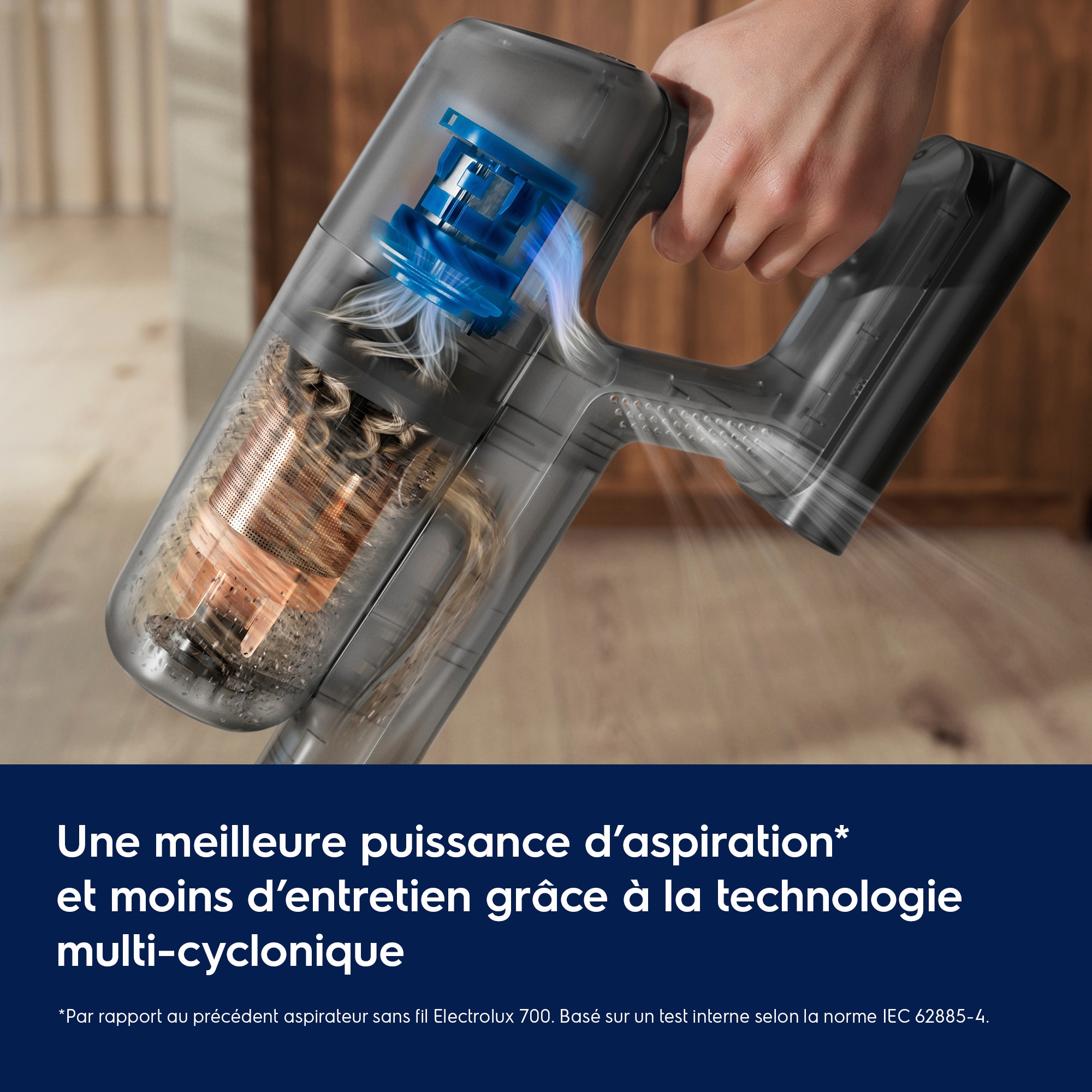 *Par rapport au précédent aspirateur sans fil Electrolux 700.