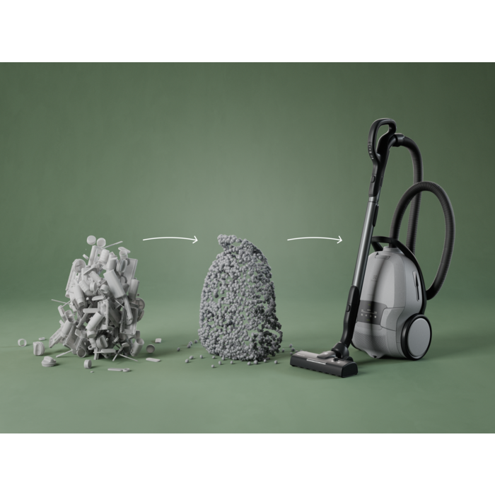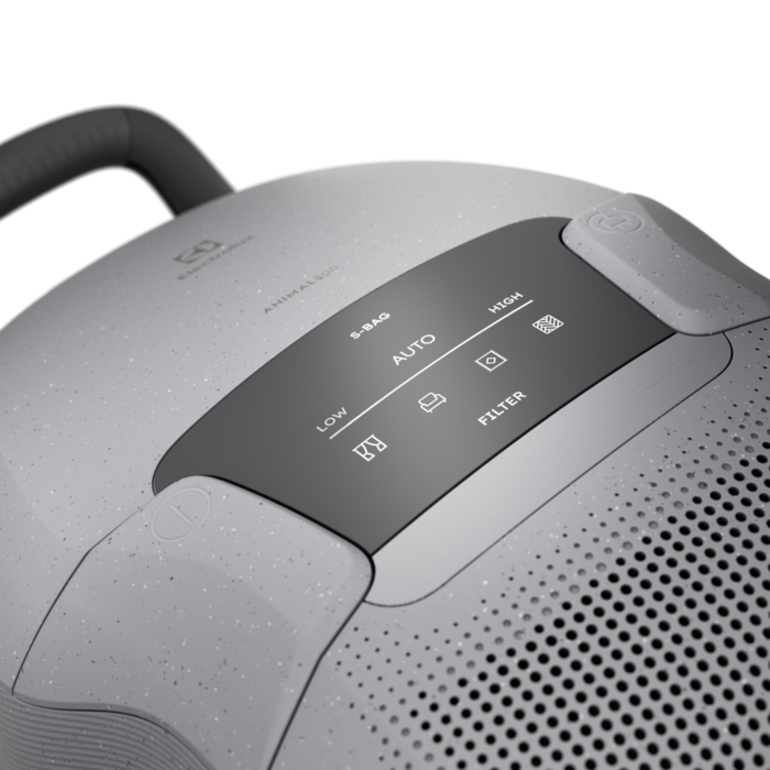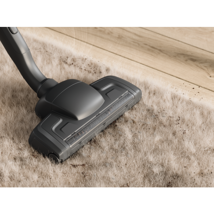 L'aspirateur a une puissance d'aspiration puissante réglable automatiquement et est équipé d'une nouvelle brosse à LED, d'un affichage numérique et d'accessoires embarqués. L’aspirateur et la brosse principale de ce produit sont fabriqués avec 48 % de plastique recyclé* (sans les accessoires supplémentaires)