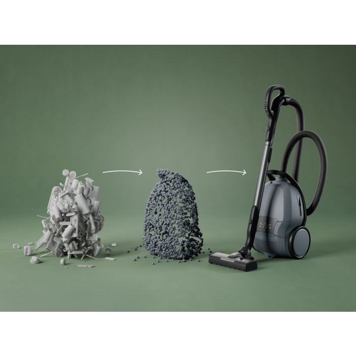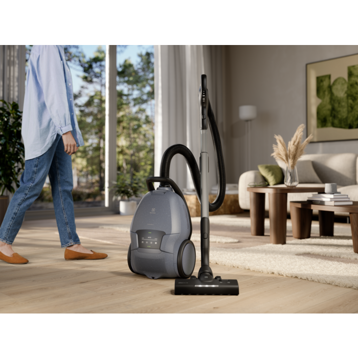 L'aspirateur a une puissance d'aspiration puissante réglable automatiquement et est équipé d'une nouvelle brosse à LED, d'un affichage numérique et d'accessoires embarqués. L’aspirateur et la brosse principale de ce produit sont fabriqués avec 48 % de plastique recyclé* (sans les accessoires supplémentaires)