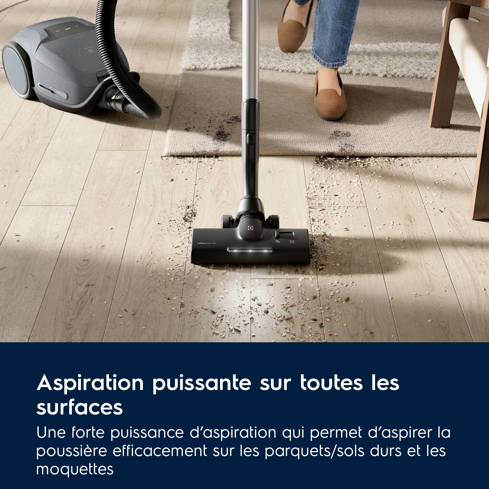*Basé sur des tests internes selon la norme IEC 62885-2 comparant la consommation d’énergie entre le mode Max et le mode Auto lors d’un nettoyage sur moquette.